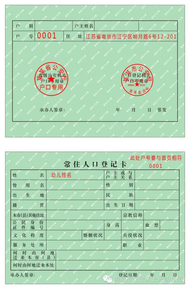 (1)户口簿户主页、幼儿户口页(两页户号必须一致); (2)独生子女证、生育服务登记证和准生证中任何一个证件(如果三个证件均无,请家长提供外市乡镇、街道或以上的计生证明。(见如下例二:幼儿为外地户口计生证明) (3)监护人在宁暂住证或居住证(此项可用在宁房产证代替); (4)监护人在宁的①与用人单位签订的正规劳动合同;②社保中心打印盖章的社保清单;③工商营业执照;④道路运输证等。(有其中一项即可) 注:第(3)和第(4)项中必须有一项满两年;这两项必须为同一监护人。 |